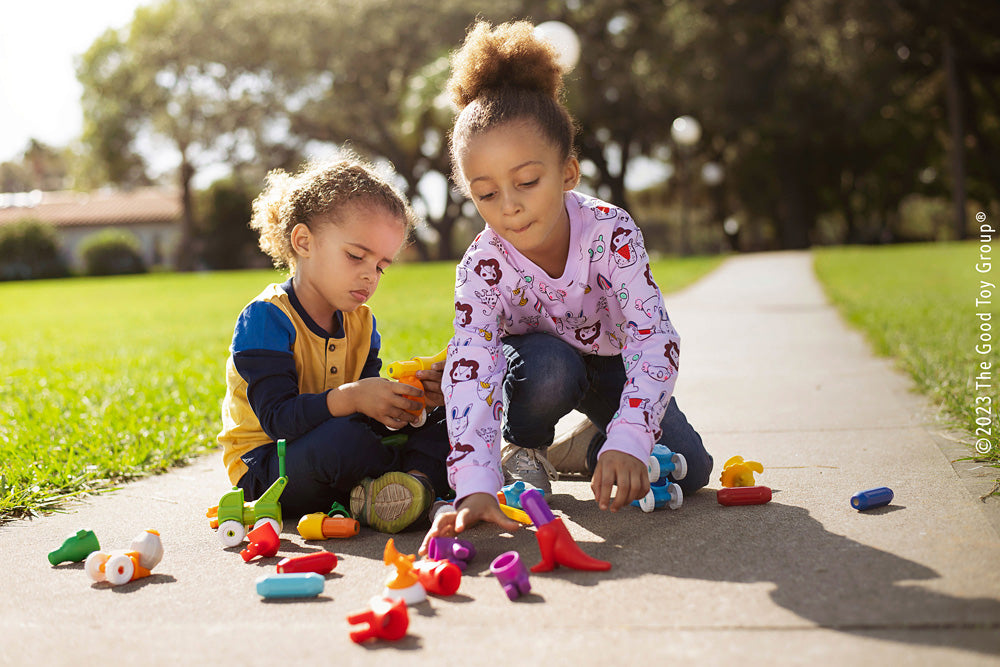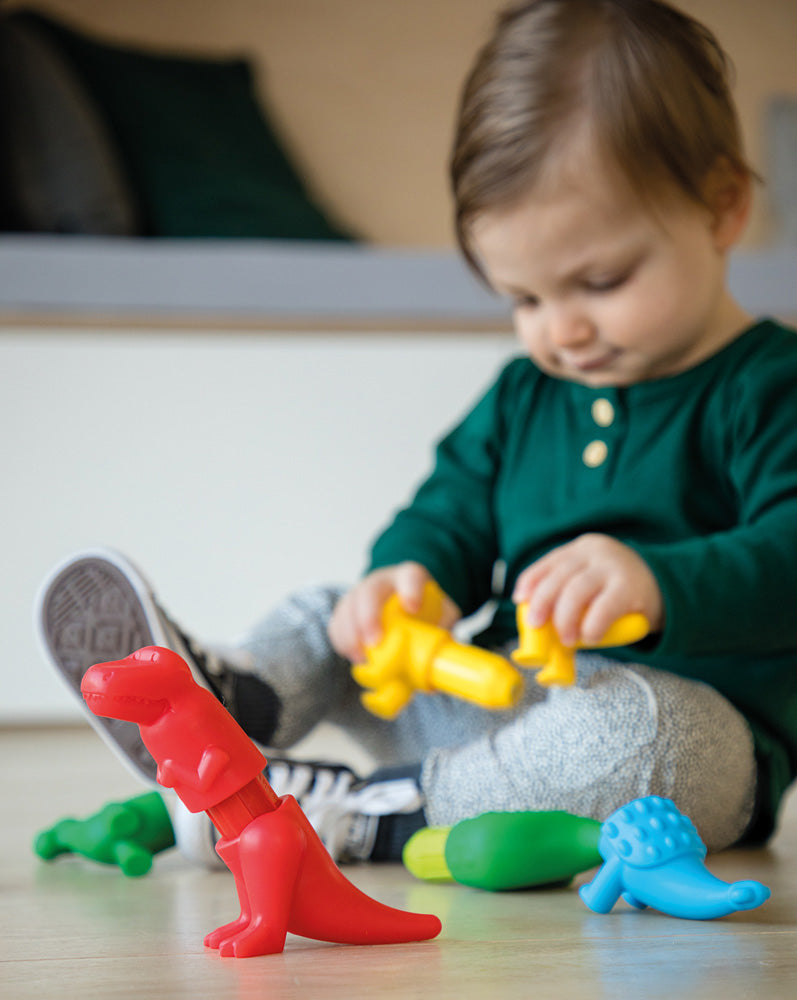 These brightly colored dinosaurs are a wonderful introduction to magnetic discovery for toddlers. The soft dino fronts and backs click easily onto the chunky center bars. Imaginative little builders can work on color matching skills to complete dinosaurs, or mix and match to create crazy new creatures! 14 piece set - makes 5 complete animals and is compatible with all other SMARTMAX.
