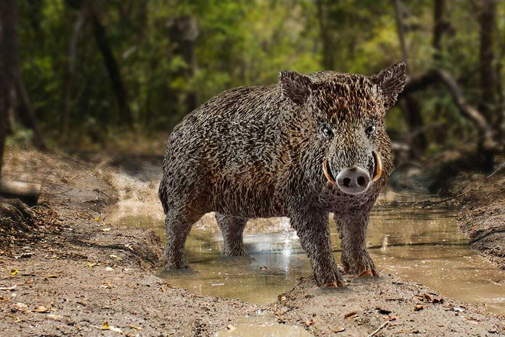 Wild boar have tusks that can inflict painful wounds on enemies like wolves and bears. In summer, wild boar like to wallow in mud to cool down. It also helps protect them from insect stings.