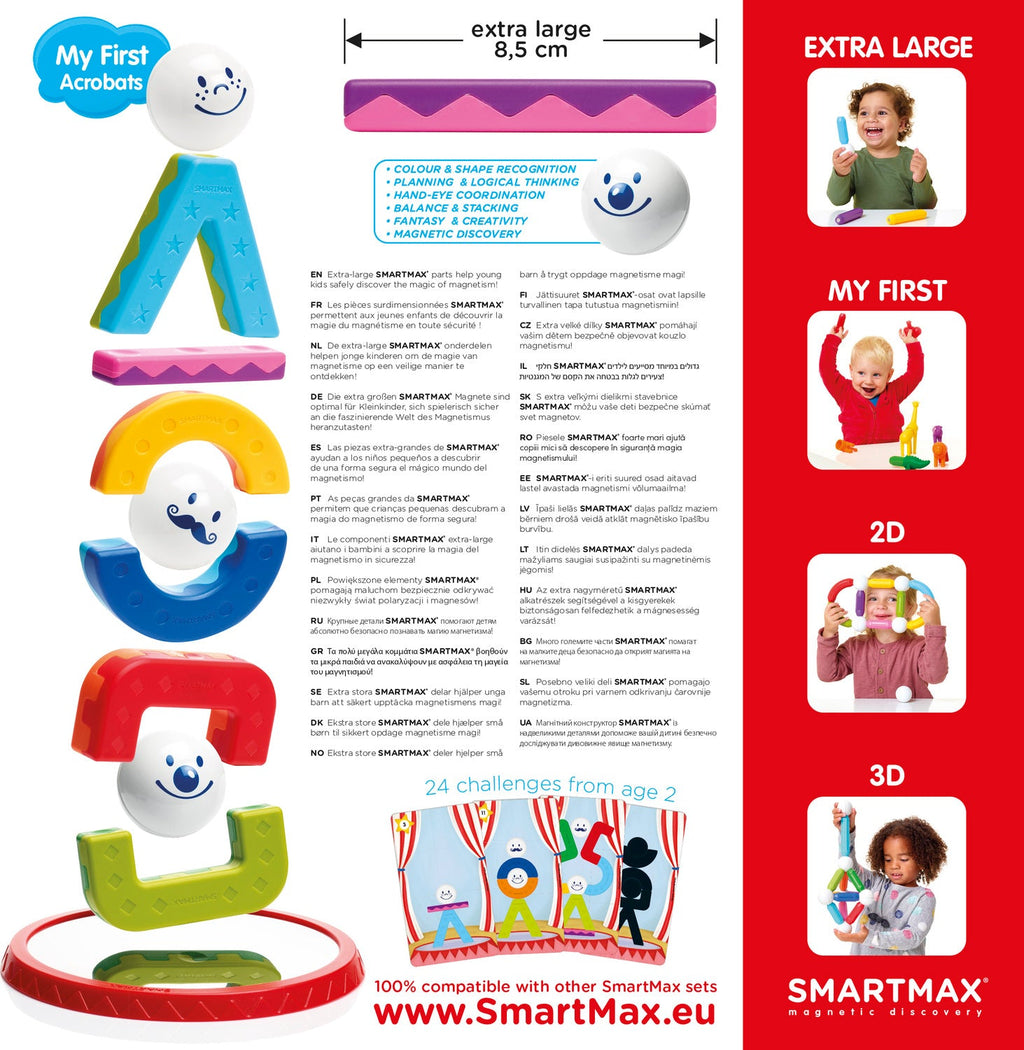 With 6 different geometric building blocks, and 3 metal balls each with a different face; little ones will love creating the coolest looking acrobatic structures!