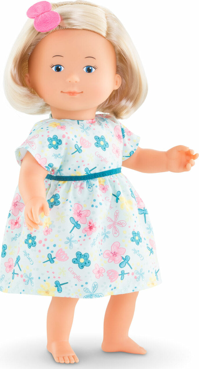 Florolle Jasmine is 13-inch soft body doll, the perfect size for young make-believe moms and dads to hug and love. She has blonde, securely rooted hair, a playful look in her blue painted eyes and a cheerful smile on her face! Her head and limbs are made of soft, supple vinyl that is delicately scented with vanilla, a Corolle signature. Dressed in a floral-print dress and with a matching scrunchie in her hair, Jasmine is part of the les Florolles Corolle collection, specially designed for little ones playing with dolls for the first time. Ages 18 months and up. (Doll cannot stand alone.)