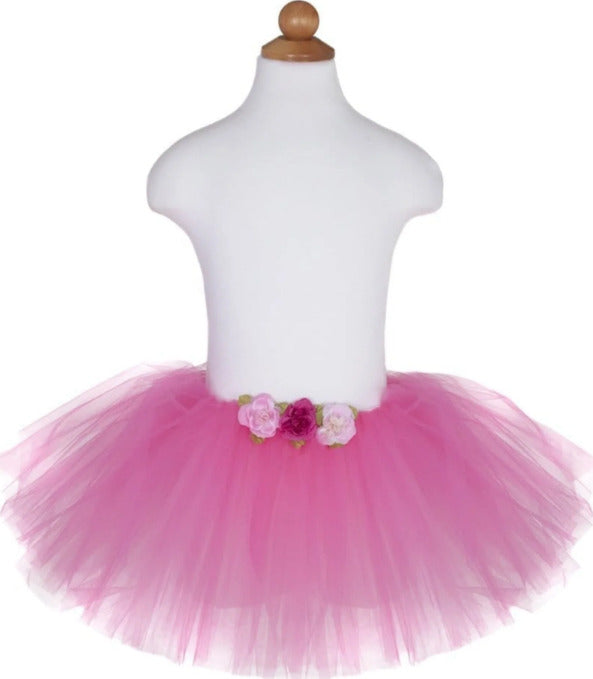 Fluffy tulle makes this adorable tutu one of a kind! Our signature tulle is not scratchy, but super soft. Gathered at the waist into the 1/2" wide elastic allows for additional sizing flexibility and comfort. Silk roses at the waist add a touch of detail. These tutus are made with care in Canada, and are a favorite essential piece with all little ballerinas and fairies.