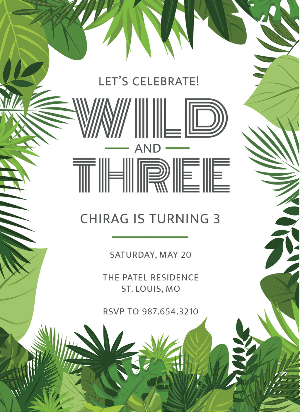 Is your little one ready to be "wild & three"? Celebrate with this jungle-themed invite.