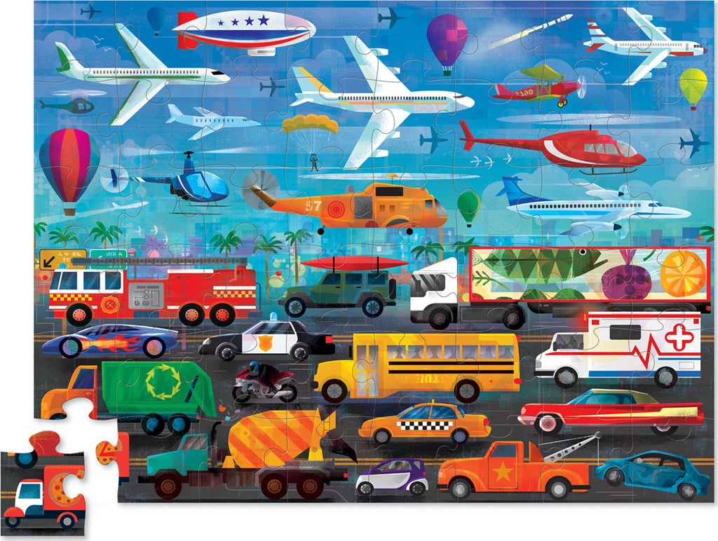 Crocodile Creek Above and Below puzzle collection features artwork of animals or vehicles from a perspective of above and below. Teach children to see the obvious and not so obvious or think about the before and after in some cases. Things that Go theme features over 30 different vehicles hustling and bustling in the air and on the roads.