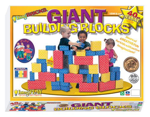 Award-winning ImagiBRICKS™ Giant Building Blocks are an enduring classic that offer endless play possibilities. Build em up and knock em down - even jump over them. Because they are constructed of lightweight corrugated cardboard, if the blocks tumble, no one gets hurt!