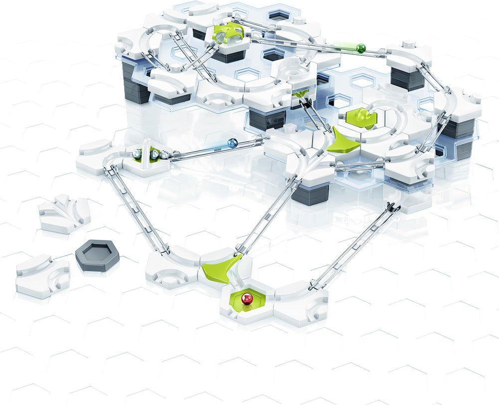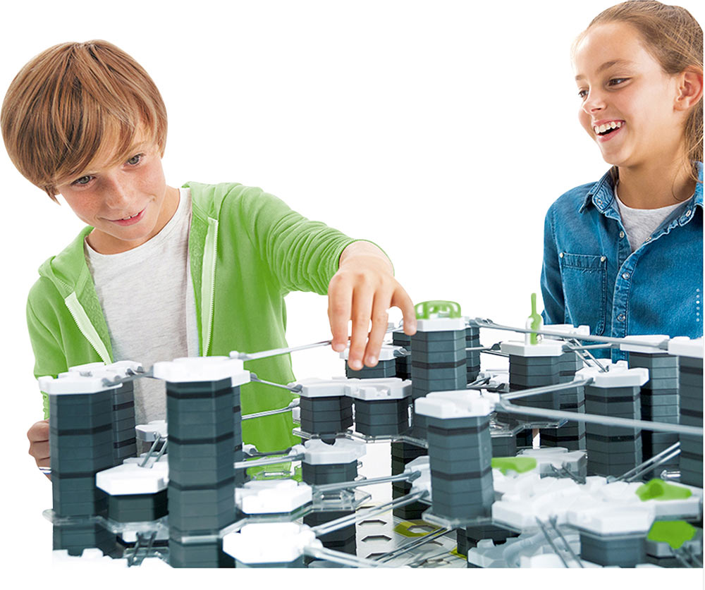 Marble racing is all the rage! This interactive track system harnesses the power of gravity, physics, and engineering, with 100+ components. Dip, jump, turn, zoom past the finish line! Design different heights and angles, and use expansion packs to add in other features!