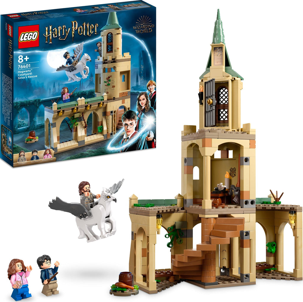 Relive the daring Sirius rescue scene from the Harry Potter and the Prisoner of Azkaban movie with this magical LEGO Hogwarts Courtyard: Sirius's Rescue (76401) castle toy for kids aged 8+ years old.