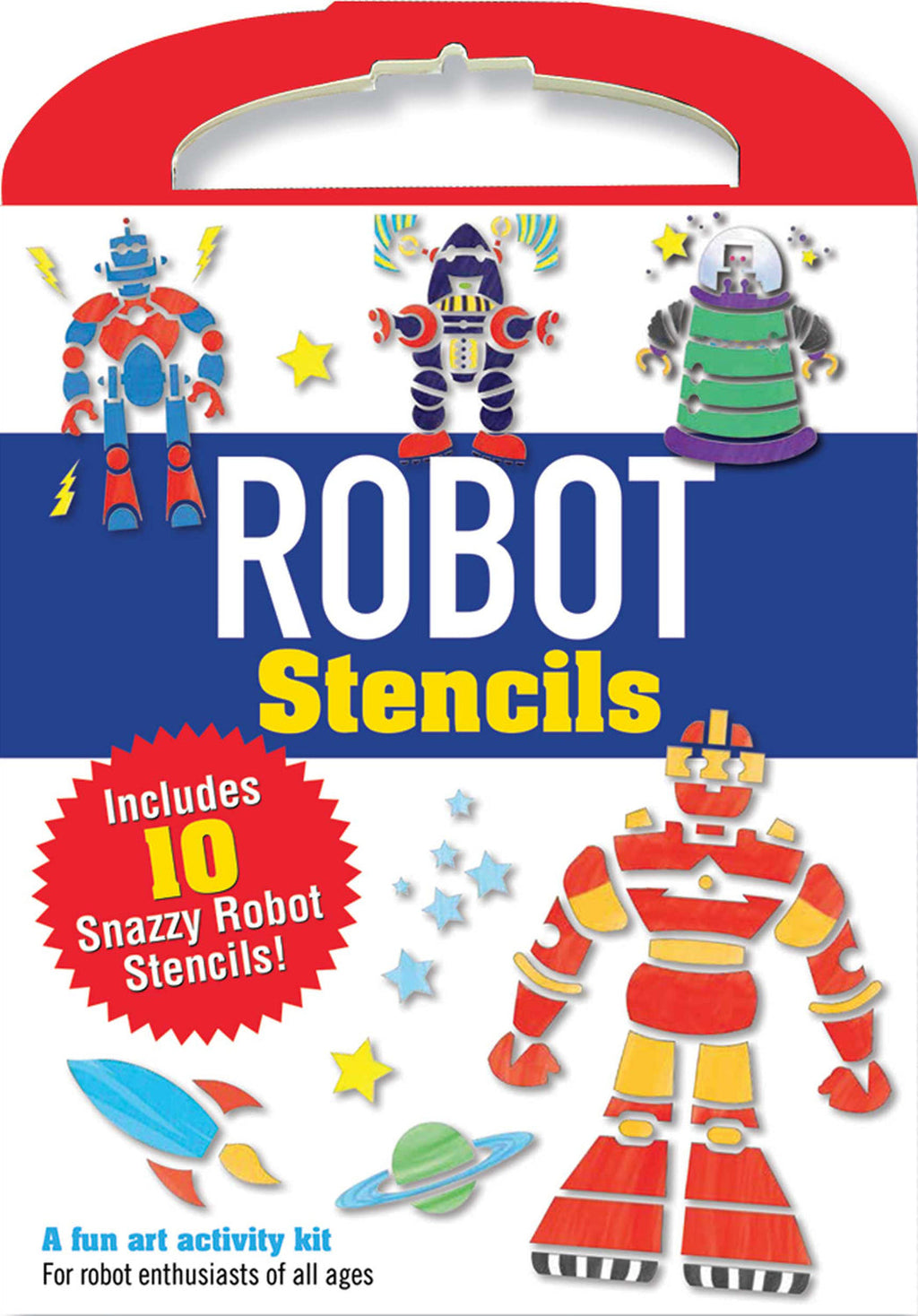Robot fans unite! This super Robot Stencil Kit includes sturdy, easy-to-use stencils for 10 of the most awesome robots you’ve ever seen, plus robot tools, spaceships, planets, and stars. Provides hours of creative fun! Just punch out the perforated