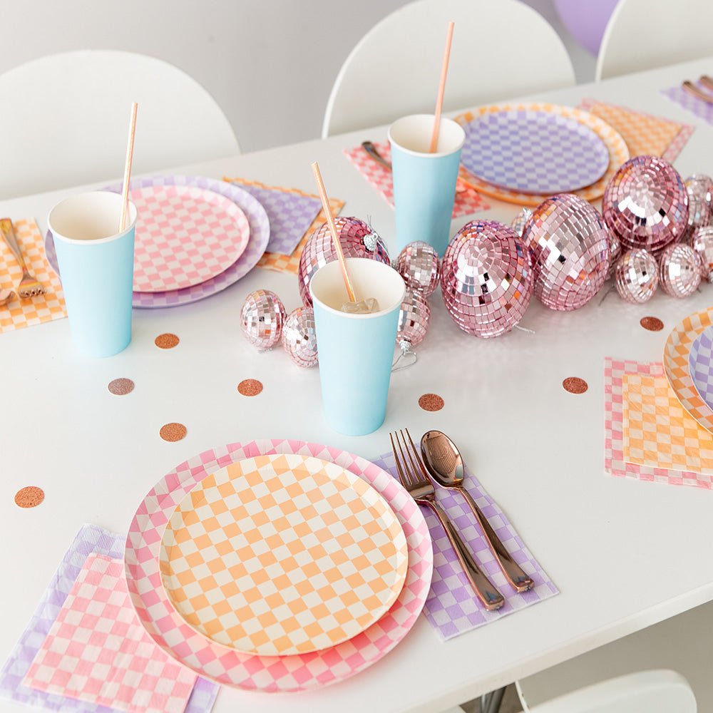 Inspired by the classic skater shoe, our Check It collection is sure to make your party checklist! The two-tone plates and checkered print napkins are perfect for mixing and matching with your favorite party pieces or used as stand-alone items.