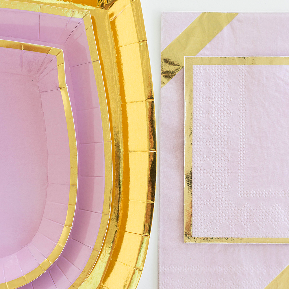 Basics that are anything but, our Posh Collection is the luxe way to set your table. From On Wednesdays pink to Oh Kale No green, we’ve got you covered in colors for any occasion with 10 solids with fab gold foiled rims and 9 solid foil designs.