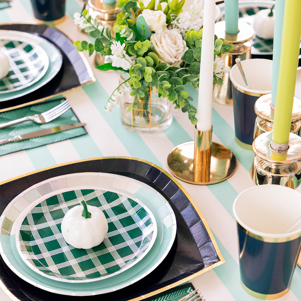 Basics that are anything but, our Posh Collection is the luxe way to set your table. From On Wednesdays pink to Oh Kale No green, we’ve got you covered in colors for any occasion with 10 solids with fab gold foiled rims and 9 solid foil designs.