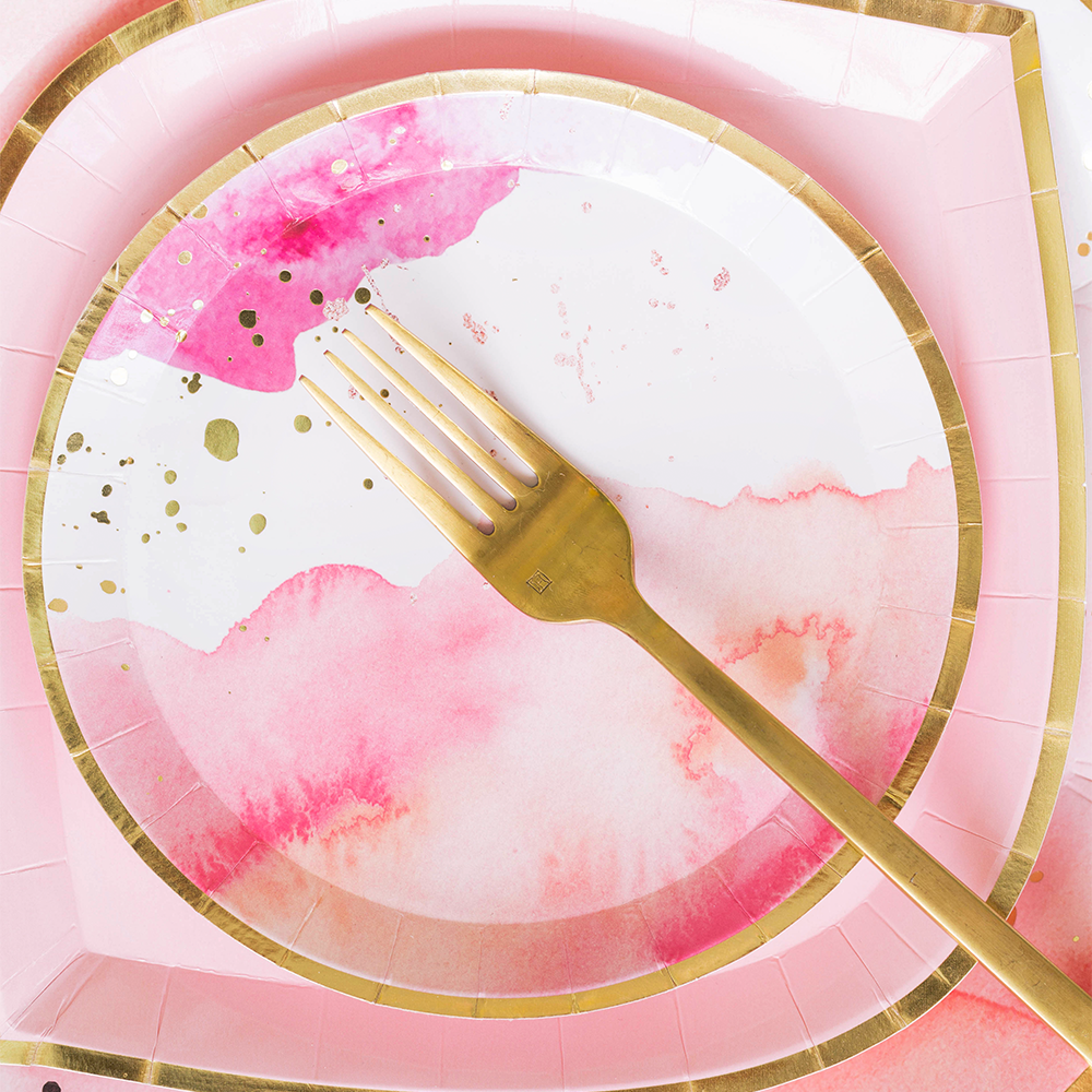 Basics that are anything but, our Posh Collection is the luxe way to set your table. From On Wednesdays pink to Oh Kale No green, we’ve got you covered in colors for any occasion with 10 solids with fab gold foiled rims and 9 solid foil designs.