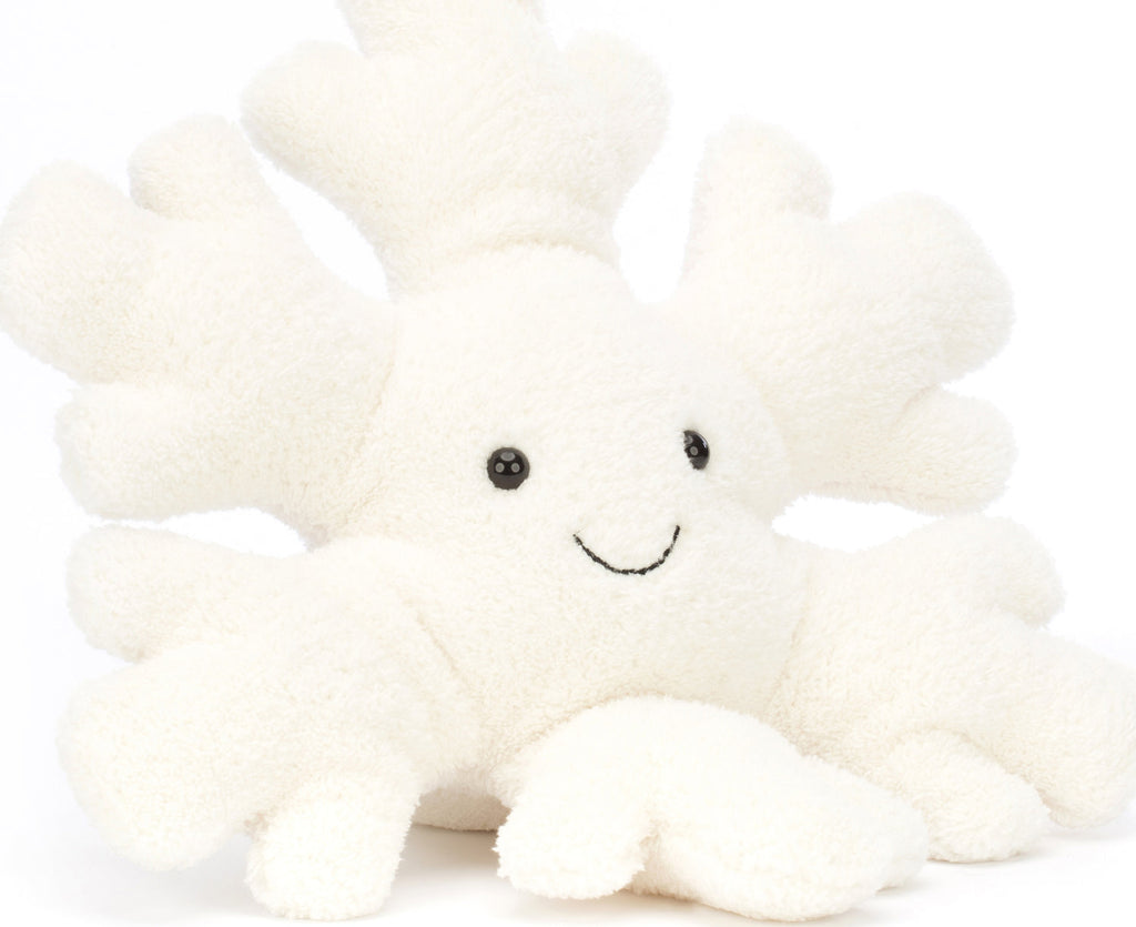 Amuseable Snowflake is all tired out from dancing about on the winter breeze! This double-cream cutie has a happy grin and a beany bottom to sit up well. With supercool squishy detailed branches, our scrumptious snowflake gives comforting cuddles.