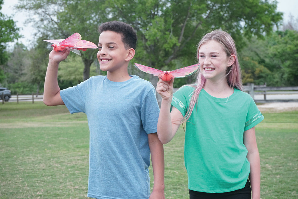 Become a dragon master, training your motorized hawk glider to flutter, glide and fly straight or in a pattern. Modern technology, like a shake auto-starter and built-in G-sensor that activates when it senses backward and forward motion, makes for a realistic flying experience. Take a quick 5-second flight indoors or a 10-second flight for more open areas. Even cooler? His four wings illuminate to light up the night sky. Charge it up with the USB charger—it'll give you one hour of play time with just 20 minutes of charging.