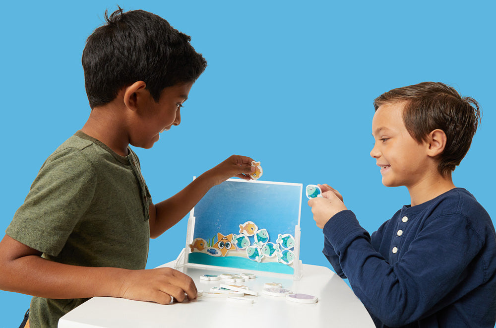 Fish Club is a classic two player abstract strategy game with a modern twist. Two families of fish are going head to head for the best spot in the new aquarium! On your turn, choose one of your fish pieces and drop it. Be careful as pieces bounce in unexpected directions and sea creatures try to block the fish from forming a group! The first player to connect 5 of their fish in the aquarium wins the game.
