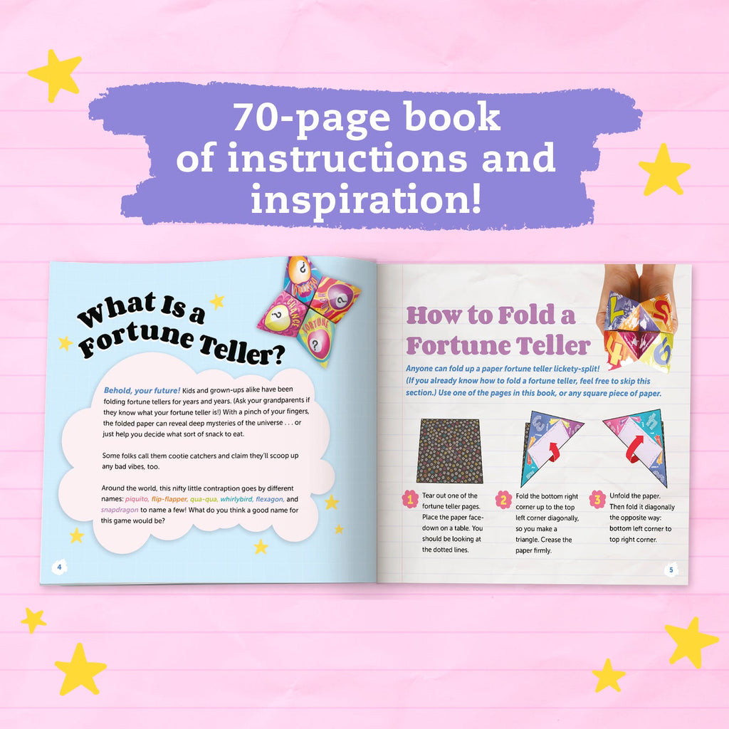 Get a sneak peek at your destiny with classic paper folded fortune tellers!Behold, your future! Kids and grown-ups alike have been folding fortune tellers, also known as "cootie catchers" for generations. Now in this interactive activity book, kids can fold 24 projects with gender-neutral art and prompts. Creativity is encouraged throughout, from fill-in-the-blank fortune tellers, to writing "a letter to my future self" in a folded paper time capsule, while games such as Truth or Dare, a spin on M.A.S.H., and storytelling prompts spark social play. The future is in your hands!