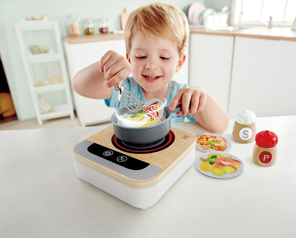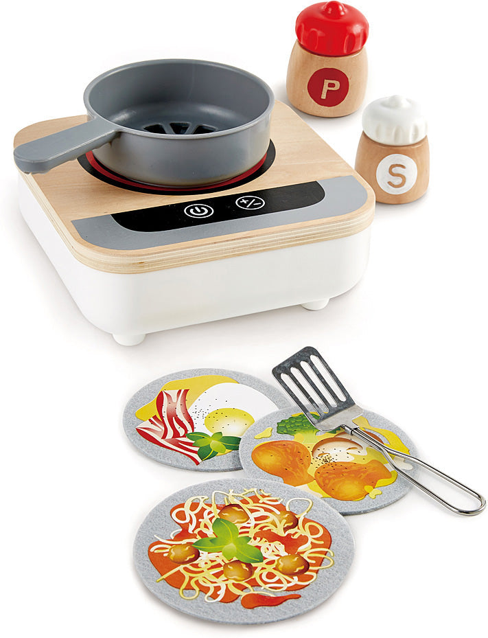 Is tonight's dinner bubbling, sizzling, or frying? It's looking like cooking, thanks to that built-in fan! The pan, spatula, recipe discs, and shakers complete the ingredient list. Requires 4 AA batteries.