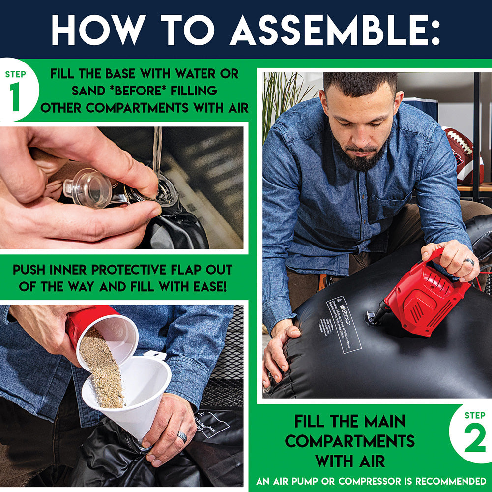 What young football star would "pass" on this? A 45" inflatable target presents 3 netted holes for perfecting passes and kicking field goals. Includes 2 soft footballs and a pump.
