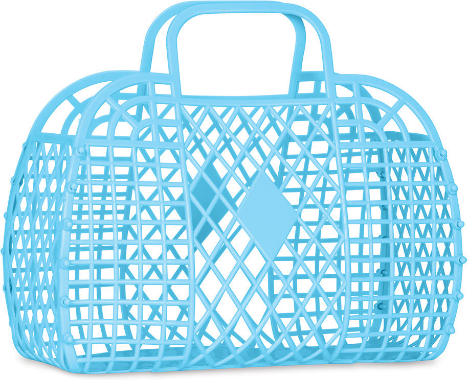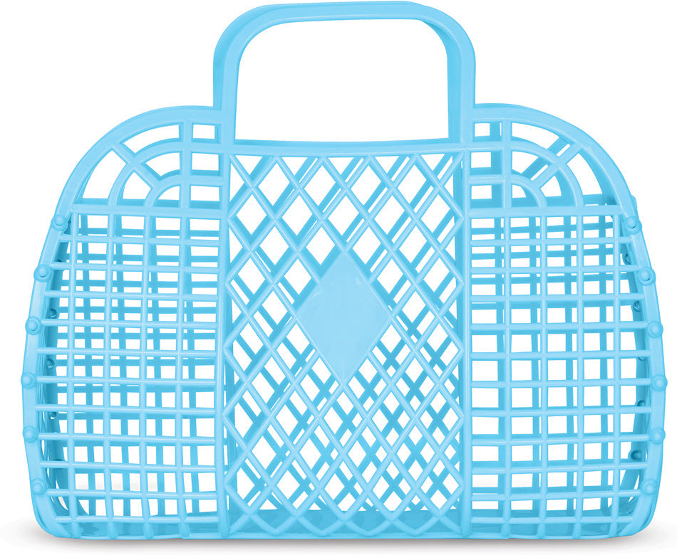 Bye bye boring basket, hello jelly bag! Made of flexible silicone, this 14x12x6 inch pastel blue bag is very on trend. It's perfect as an Easter basket, as a stylish purse when traveling, or even a chic way to store toys and games at home. Accessories sold separately.