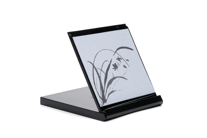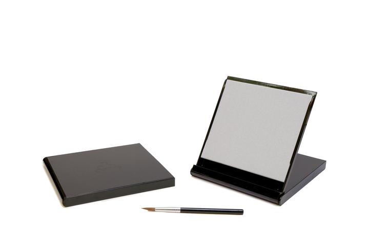 The Mini Buddha Board is an elegantly packaged, 5-inch square portable Buddha Board that folds into its own small easel stand. It has a little trough for water if desired, and comes with a small paint brush. Enjoy!