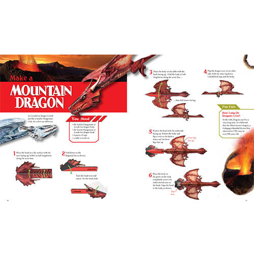 Made of sturdy card stock, these 12 fearsome, stunning dragons are ready to fold and fly. Use expert tips to build a custom dragon, then read on for fascinating dragon facts written by award-winning science fiction author Pat Murphy.