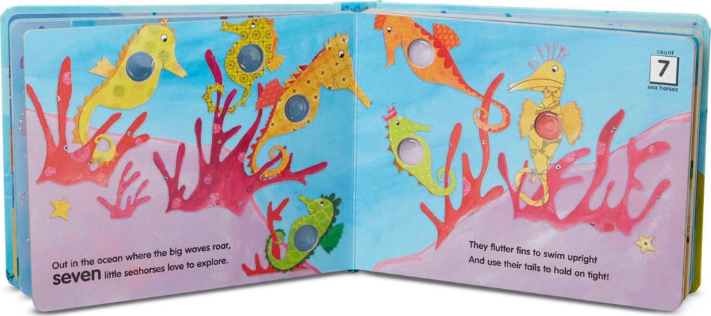 Who’s in the Ocean? Pop the dots to find out! Poke the irresistible click-to-count buttons to hear satisfying “clicks” and “pops” as you count all the amazing creatures in the sea! This sturdy 20-page interactive board book invites kids to pop along as they explore the ocean and learn fun facts along the way! Poke-a-Dot® books help encourage language development, counting, and fine motor skills. Patented Pop-a-Tronic™ technology lets kids discover different popping sounds by poking the dots from the front or the back, with pages raised or flat!