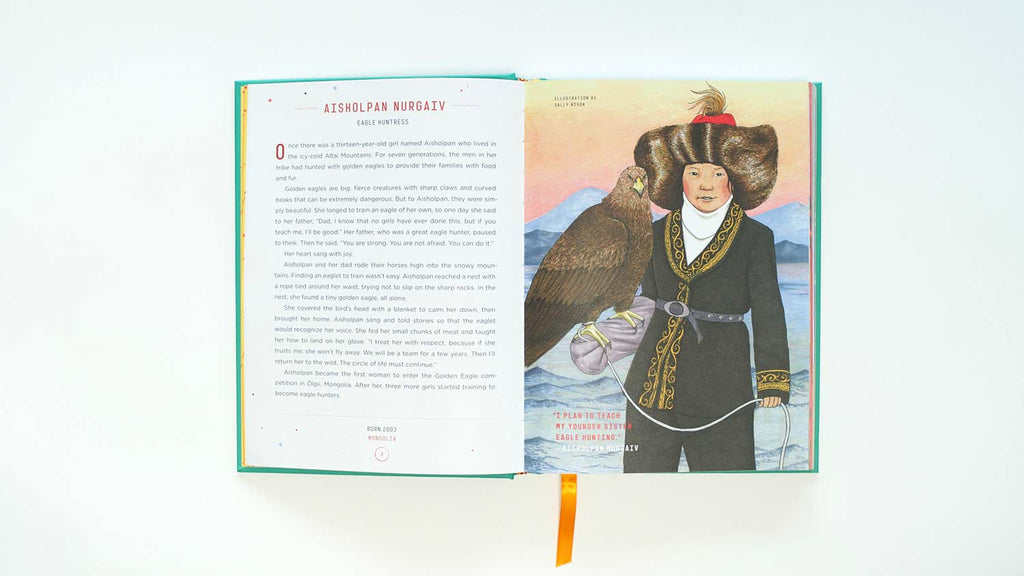 After the release of Good Night Stories for Rebel Girls, the passionate community of supporters, spanning 70+ countries, wrote in to suggest the Rebel Girls who inspired them. As a result, the stories in Volume 2 are entirely crowd-sourced and boasts a brand-new graphic design, a glossary, and full-page, full-color portraits of each subject, created by the best female artists of our time.