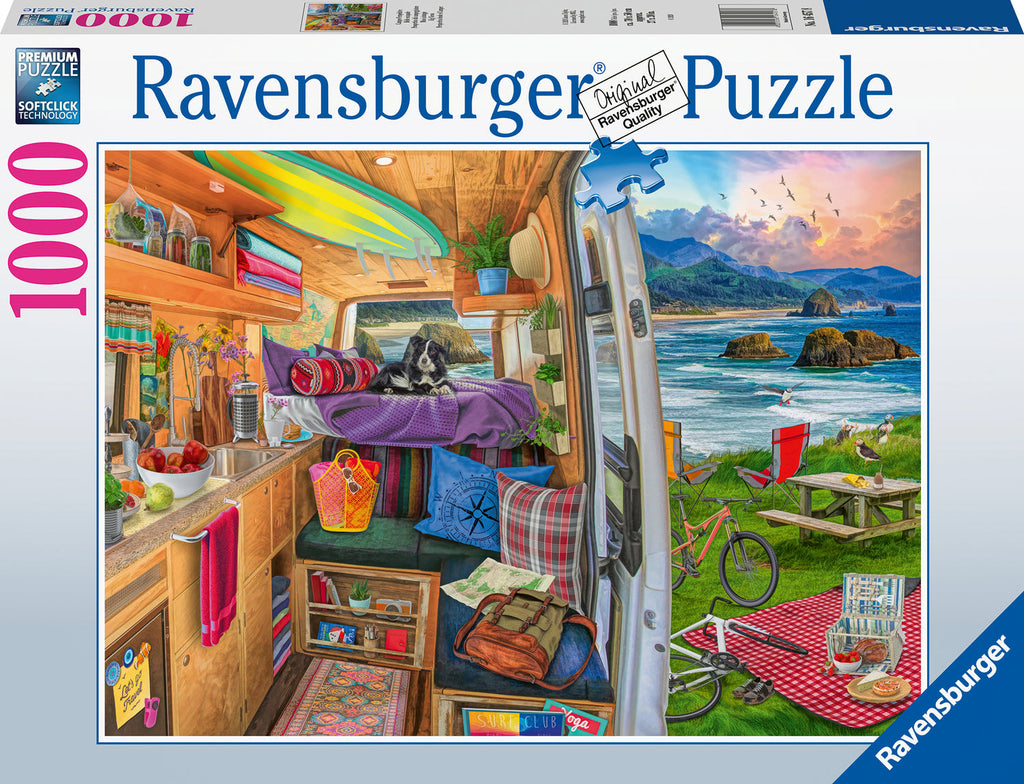 With a wide range of images and designs to choose from, including favorite characters, adorable animals, fantasy images, landscapes, monuments, and more, we've got the perfect puzzle for every puzzler. Assemble the pieces and travel the country in this adorable camper van that has stopped on the coast to pick you up for an adventure! One of the more popular piece counts among avid puzzlers, Ravensburger 1000 piece puzzles are create a challenging and satisfying experience from our strategic image selection to our unmatchable quality.