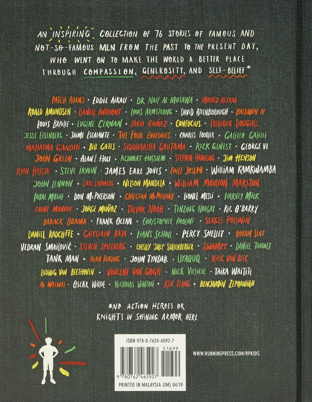 It's an accessible compilation of 75 famous and not-so-famous men from the past to the present day, every single one of them a rule-breaker and stereotype-smasher in his own way. Entries include Frank Ocean, Salvador Dali, Beethoven, Barack Obama, Ai Weiwei, Jesse Owens, and so many more-heroes from all walks of life and from all over the world.
