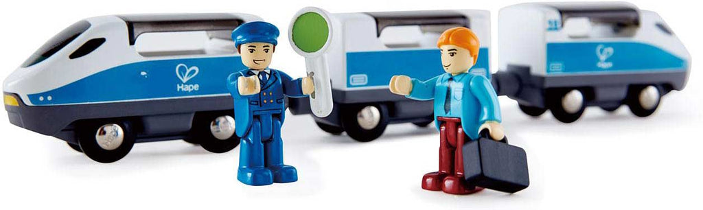 All aboard! This fast train has plenty of room for a driver and a passenger with luggage. Clever magnets link the carriages together no matter how they are oriented, and there's a warning sign to keep everyone safe. Come up with your own stories about traveling between cities. For ages three and over.