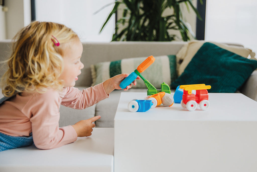 SmartMax My First Vehicles Build 4 vehicles by clicking soft materials onto strong and safe magnetic bars.